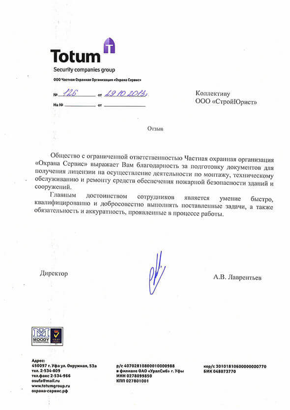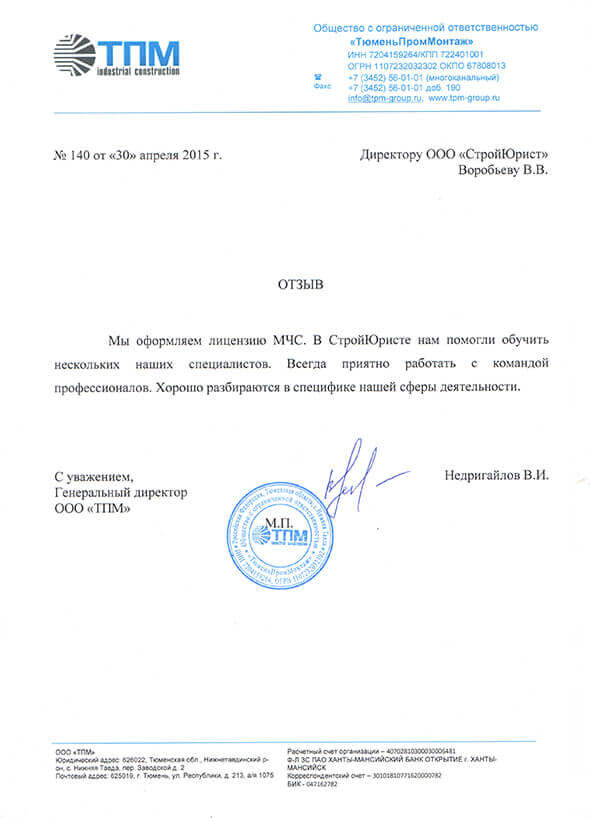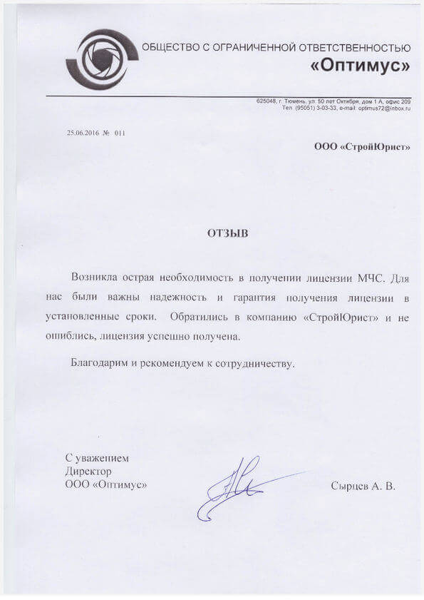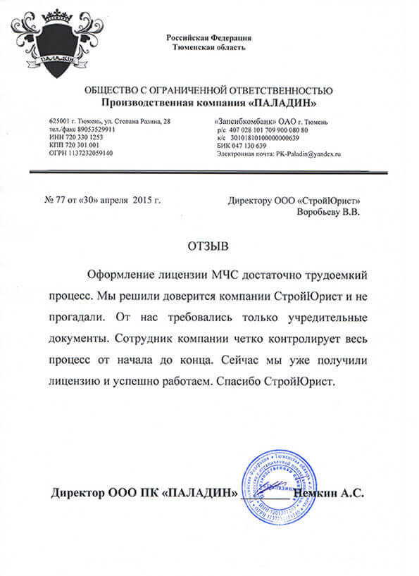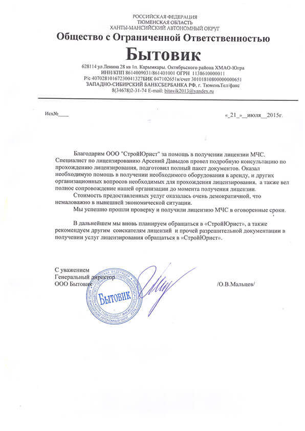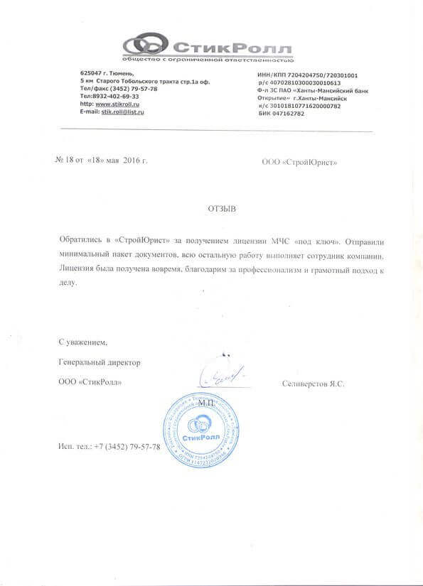 Отзывы клиентов "СтройЮрист" по лицензированию МЧС в Подольске