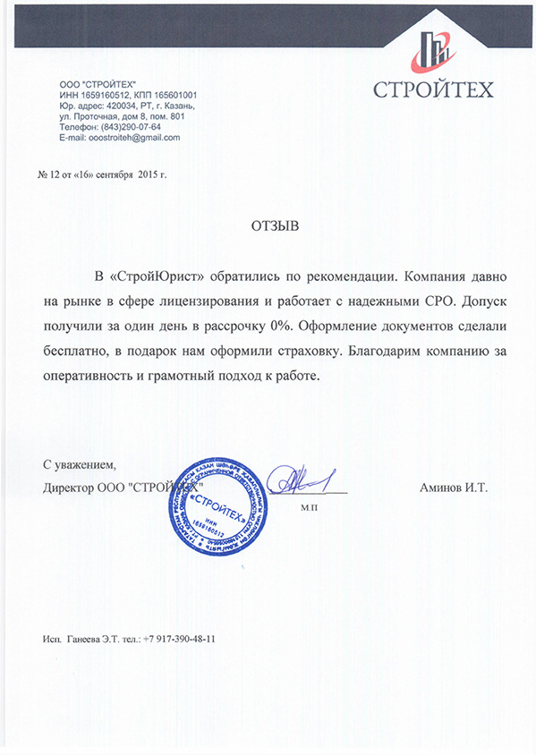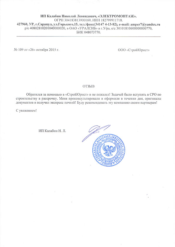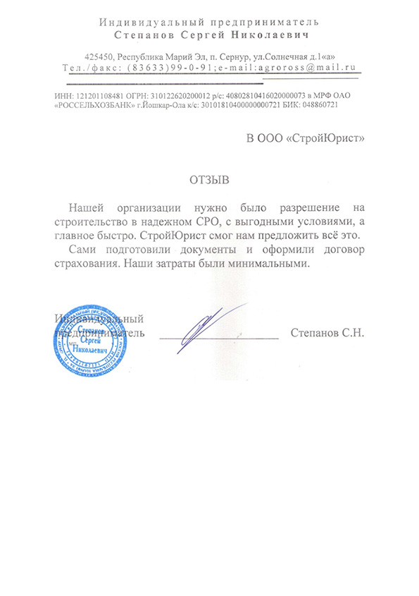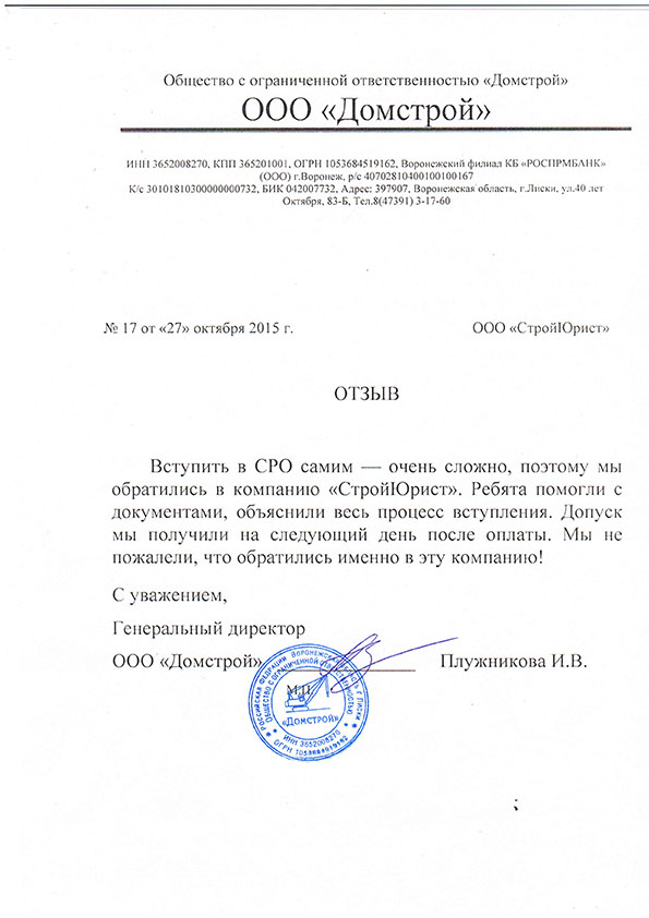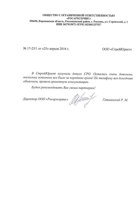 Отзывы клиентов "СтройЮрист" по вступлению в СРО в Подольске