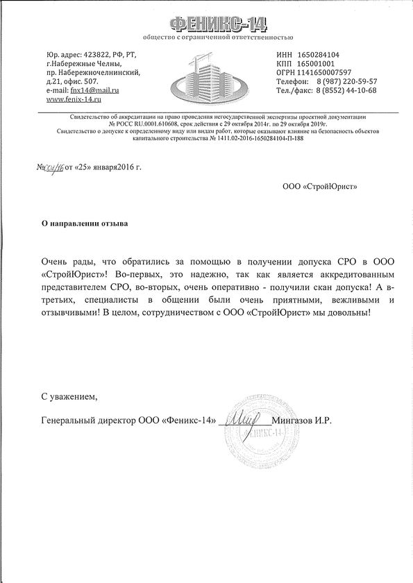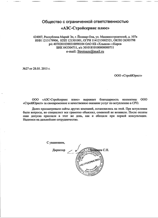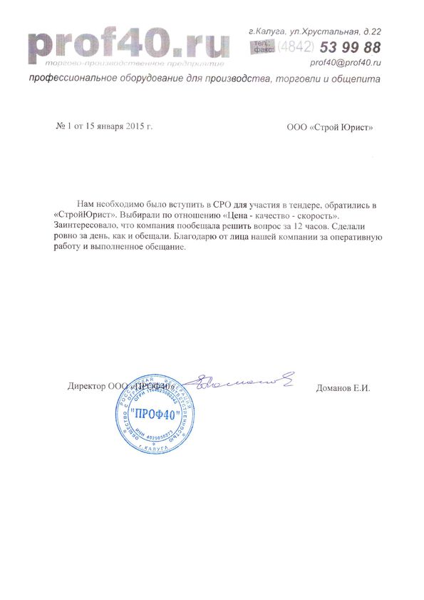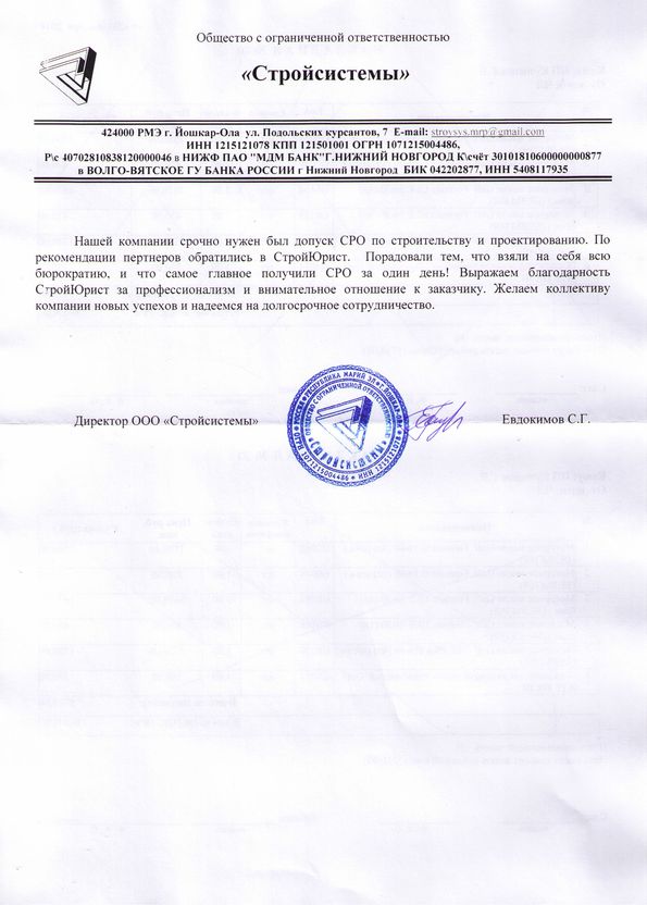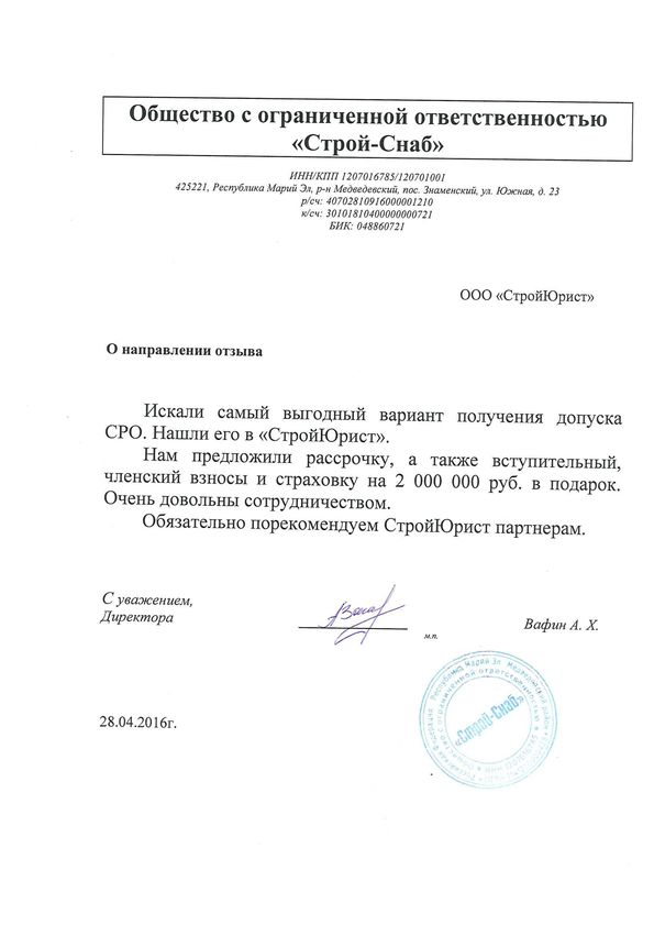 Отзывы клиентов "СтройЮрист" по вступлению в СРО в Подольске