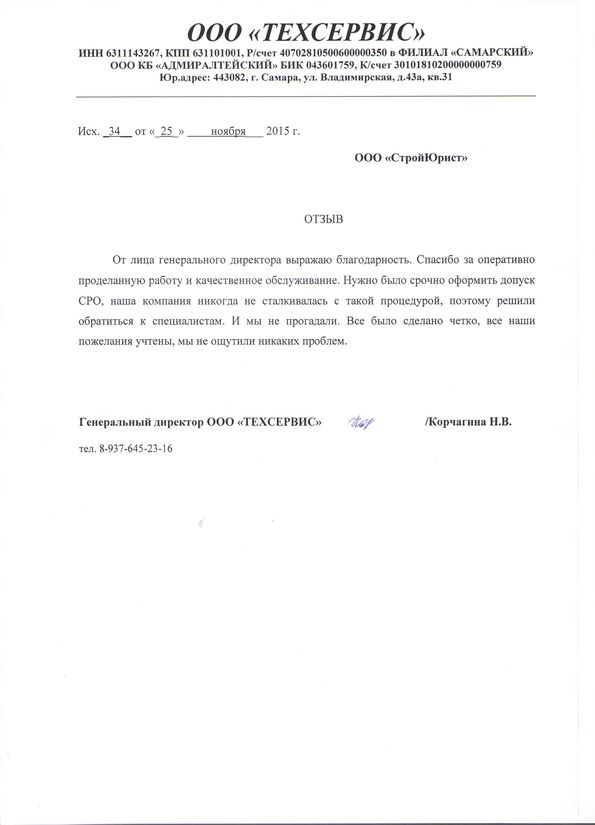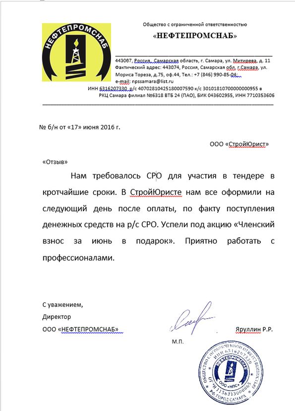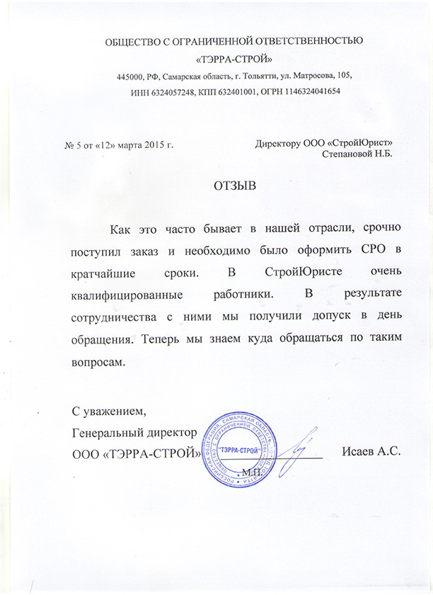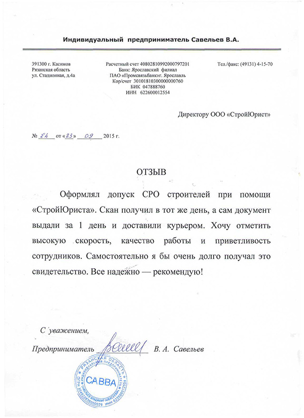 Отзывы клиентов "СтройЮрист" по вступлению в СРО в Подольске