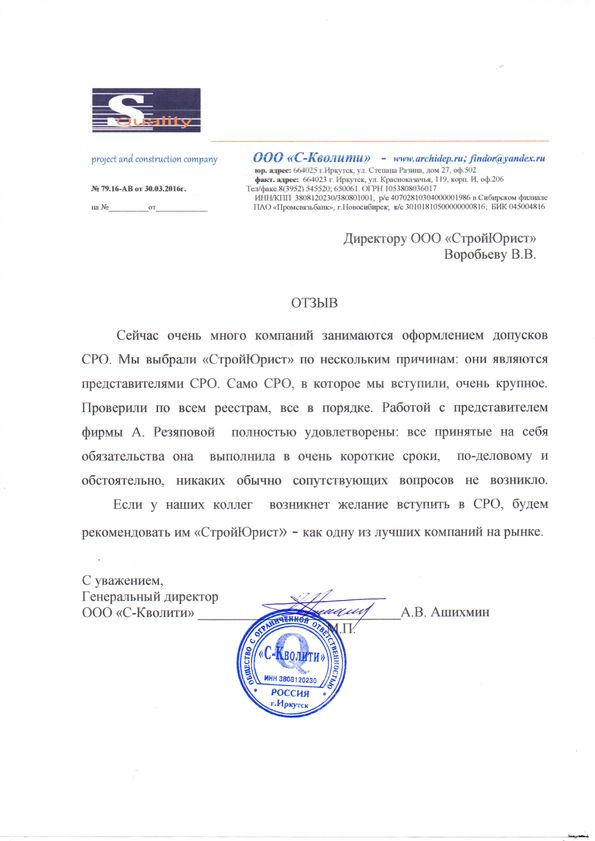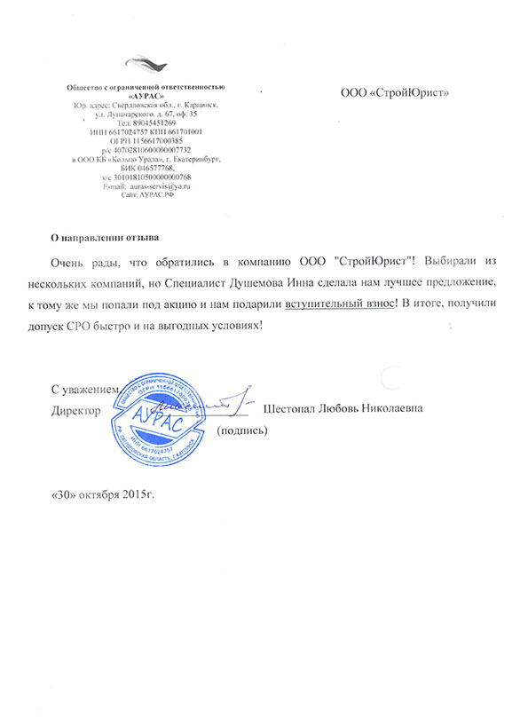Отзывы клиентов "СтройЮрист" по вступлению в СРО в Подольске