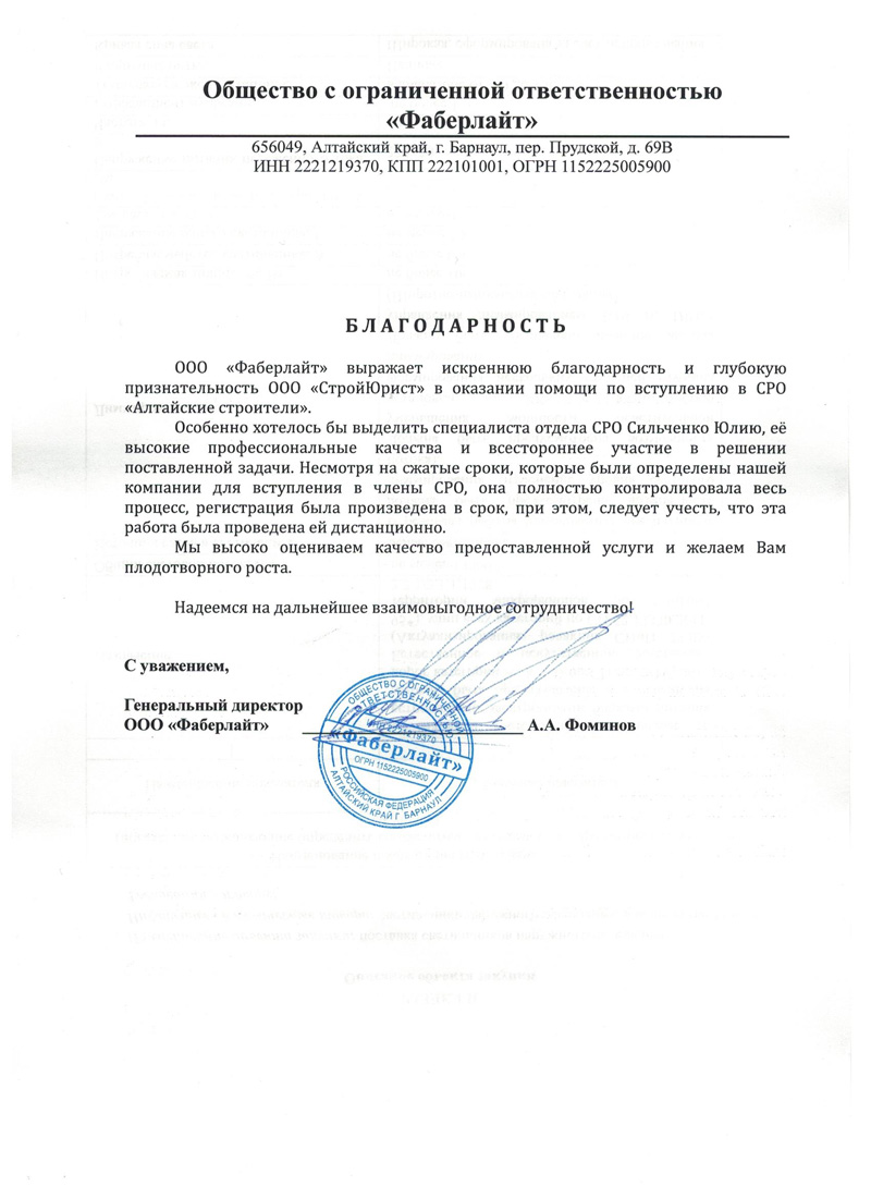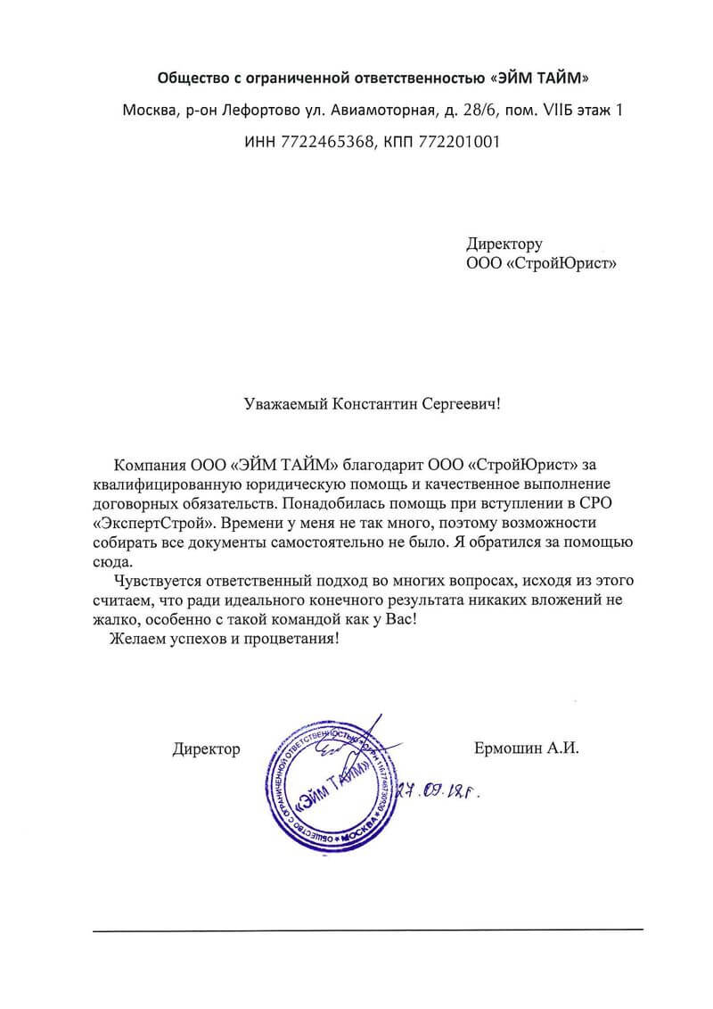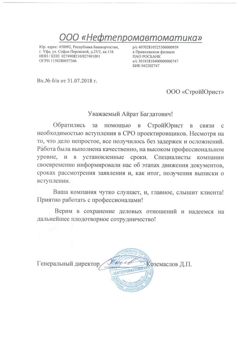Отзывы клиентов "СтройЮрист" по вступлению в СРО в Подольске