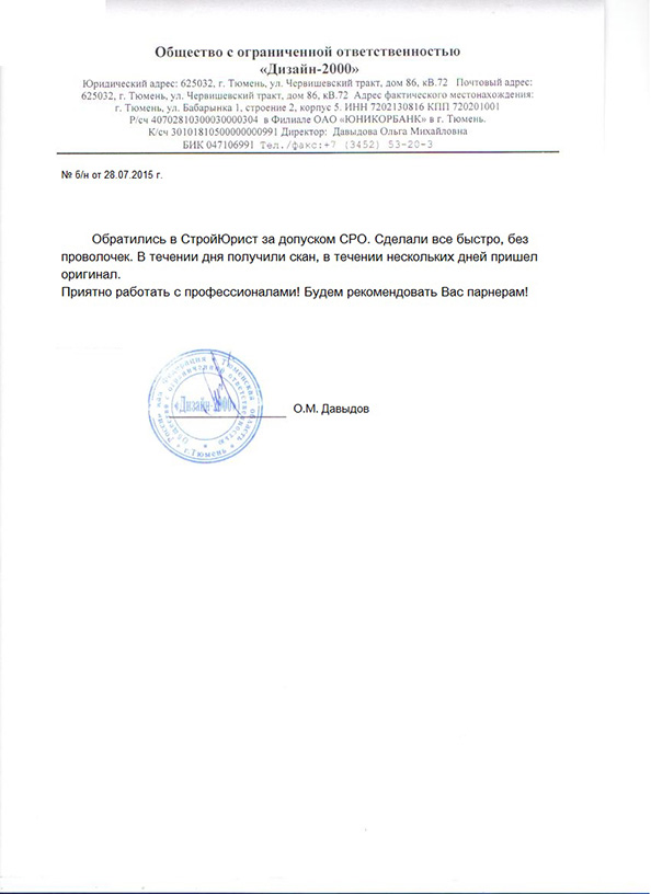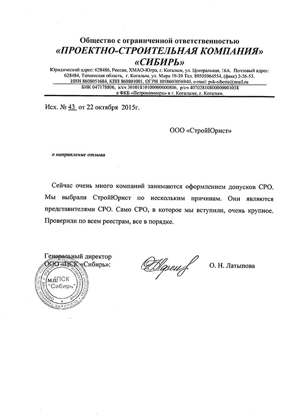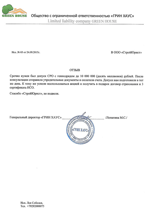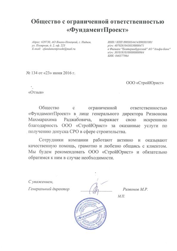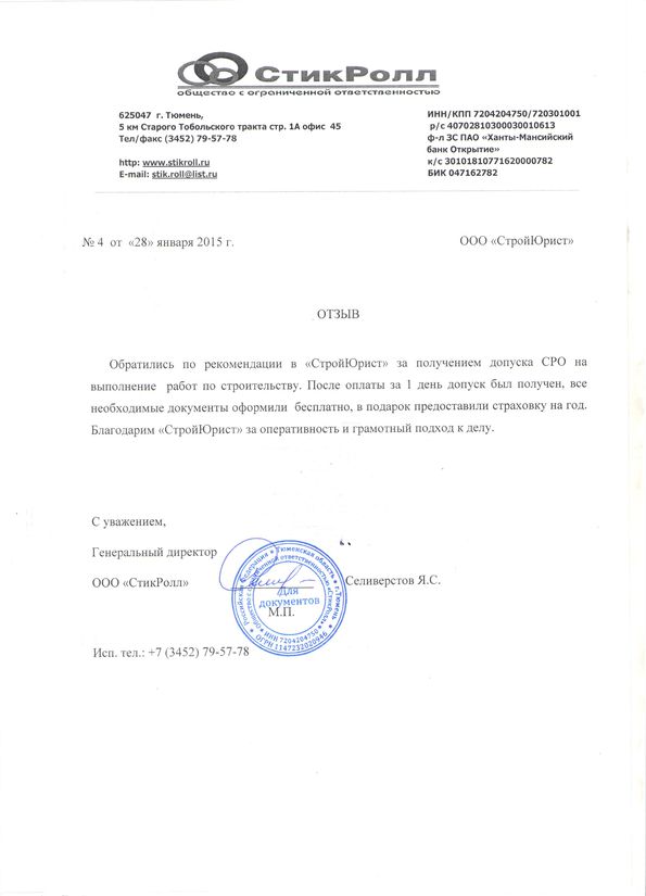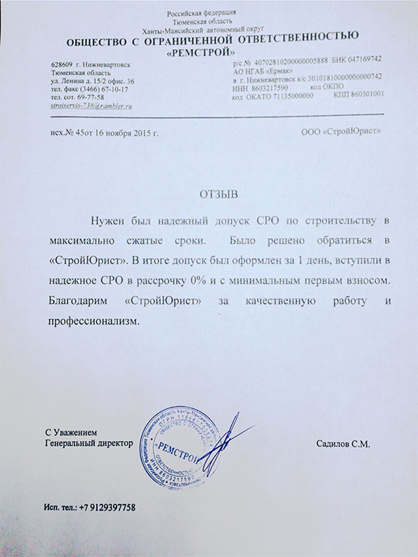 Отзывы клиентов "СтройЮрист" по вступлению в СРО в Подольске