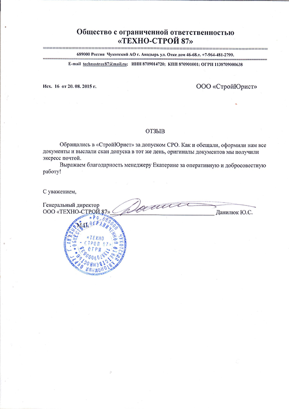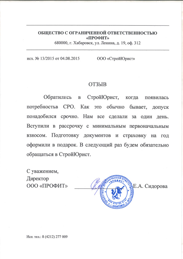 Отзывы клиентов "СтройЮрист" по вступлению в СРО в Подольске