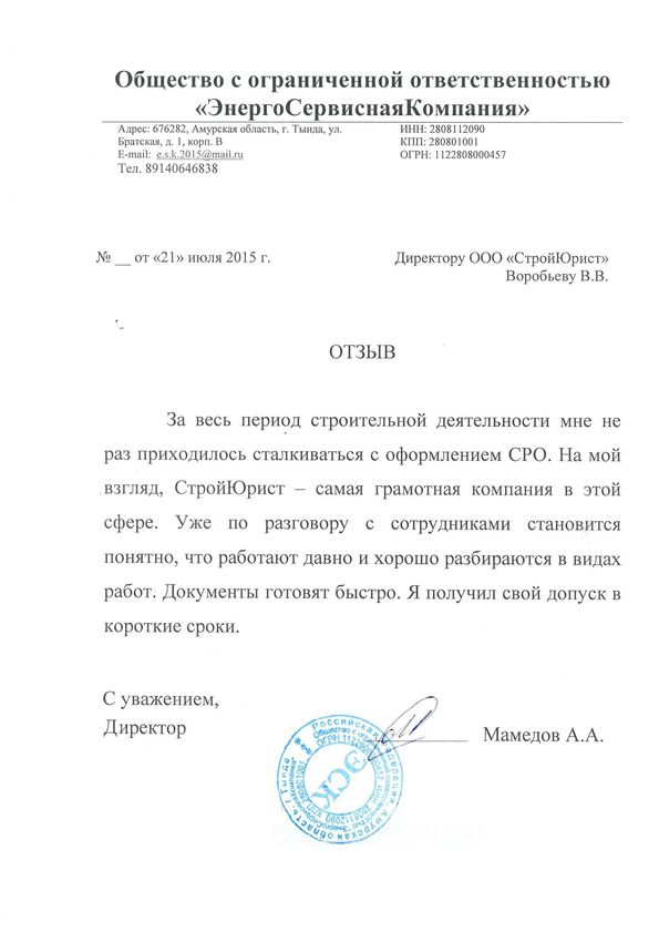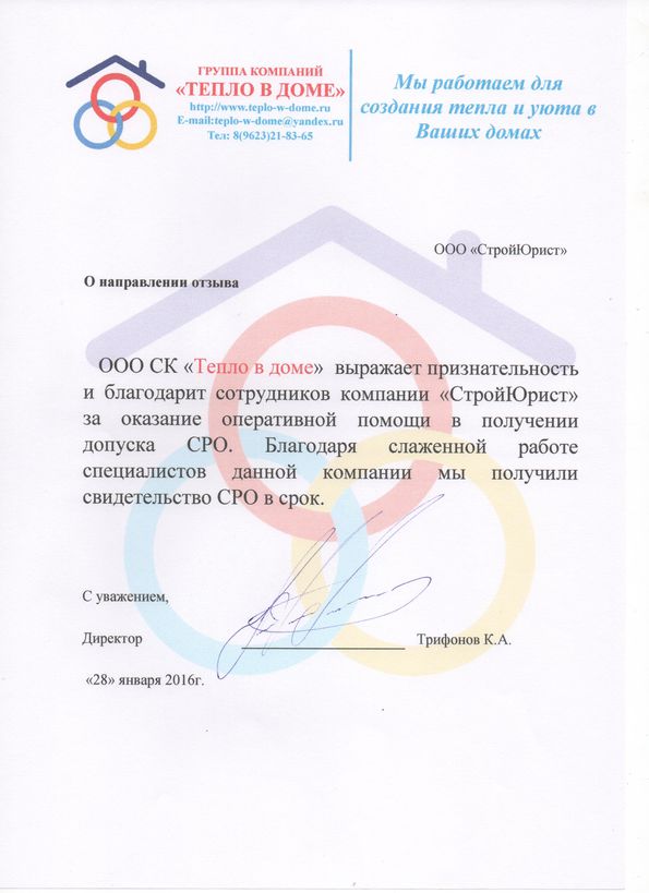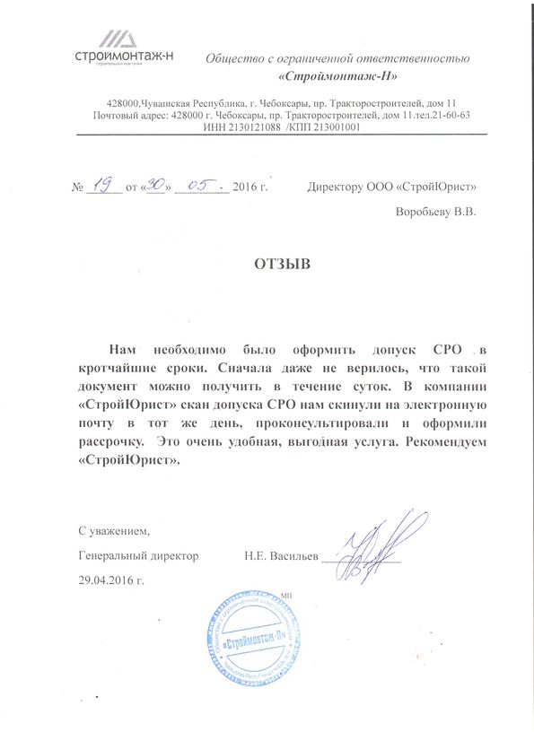 Отзывы клиентов "СтройЮрист" по вступлению в СРО в Подольске