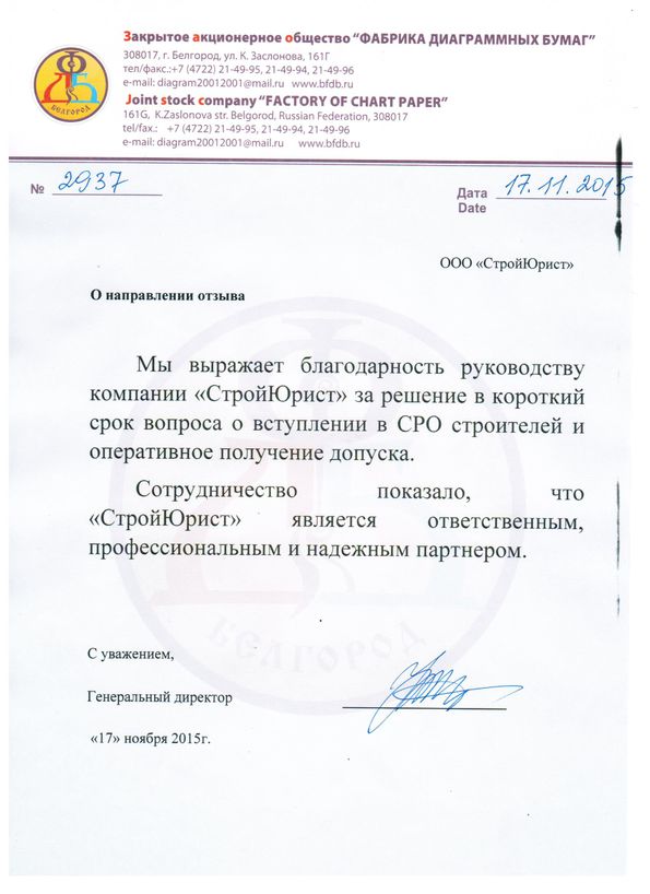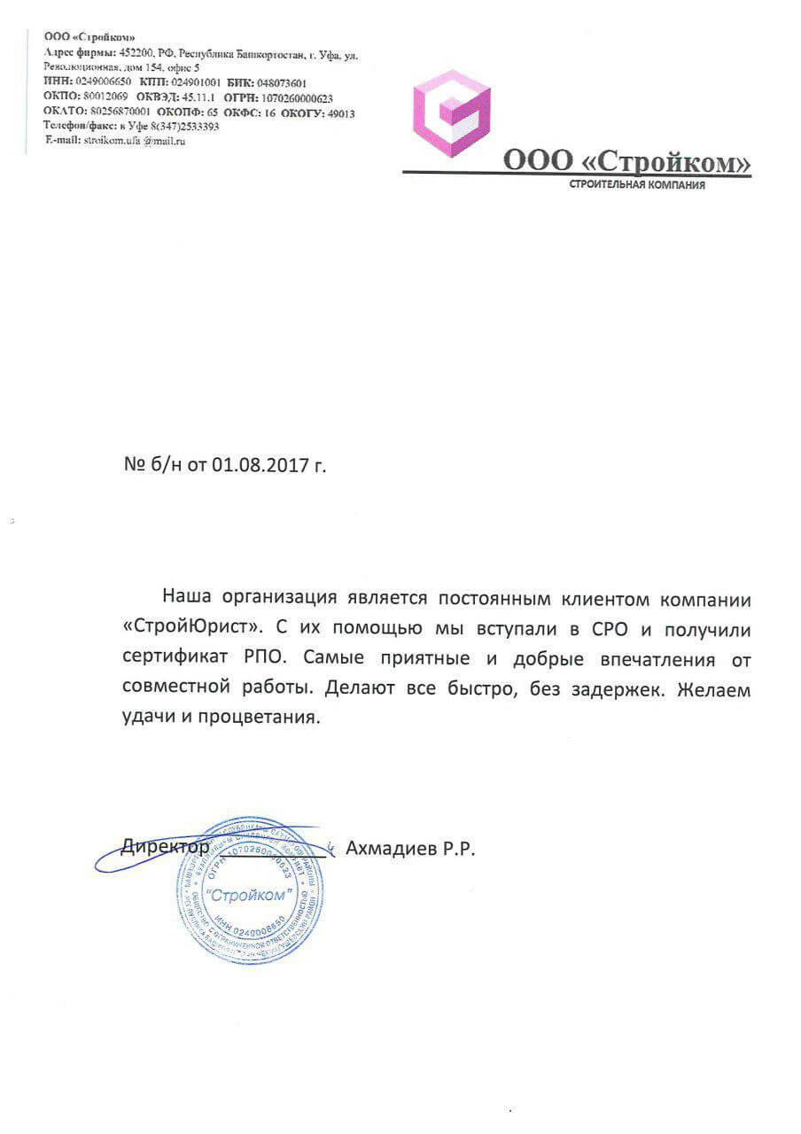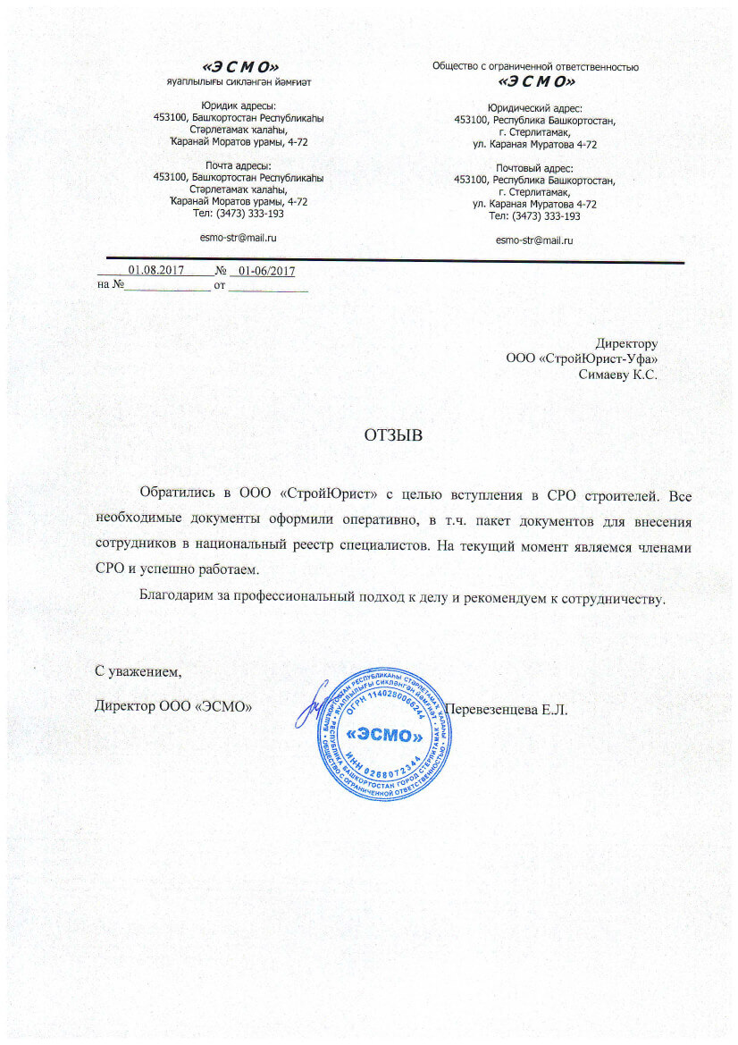 Отзывы клиентов "СтройЮрист" по вступлению в СРО в Подольске